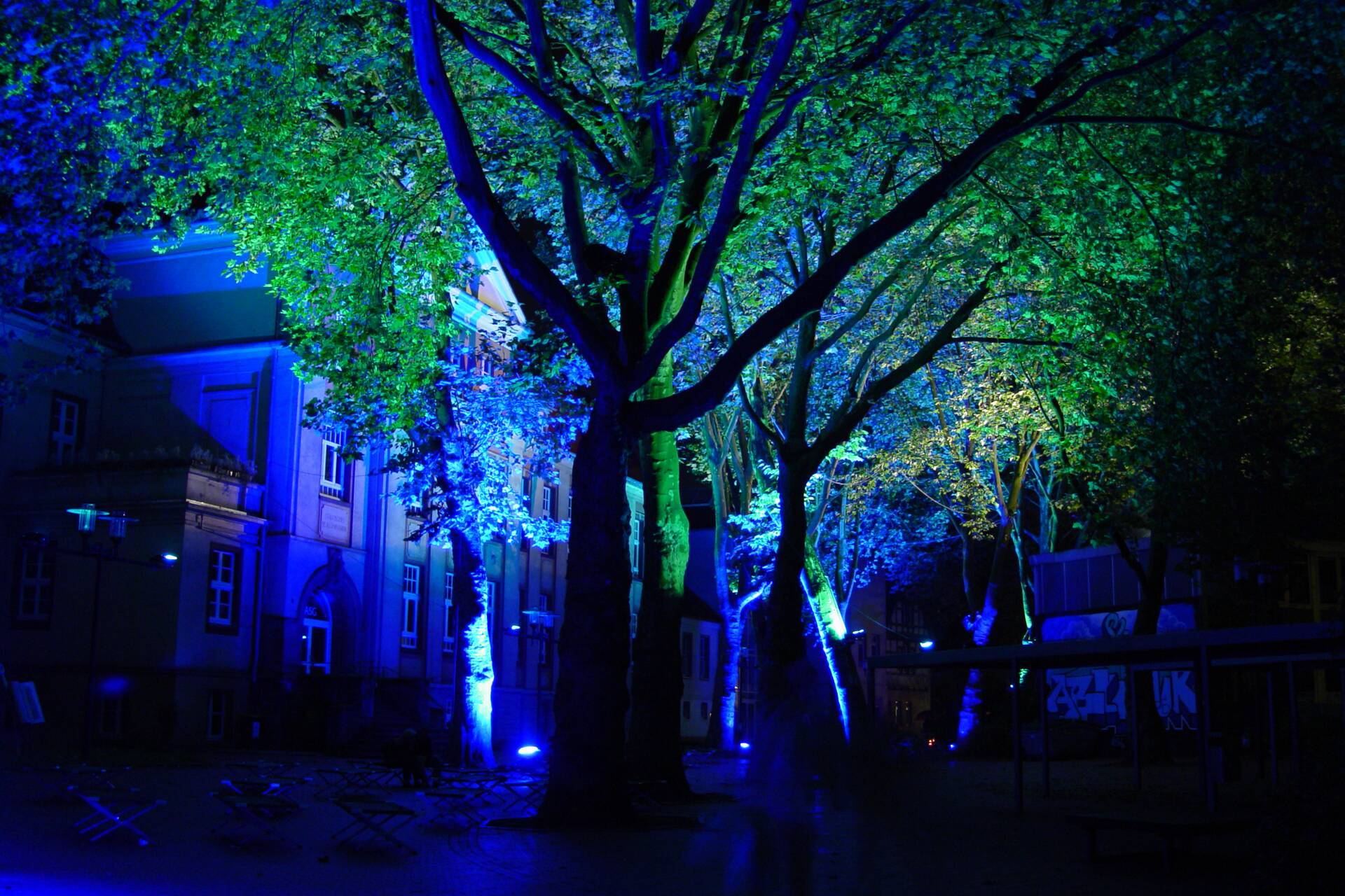 Im Rahmen eines Förderprogramms wurde ein innerstädtischer Transferraum temporär in Szene gesetzt und zu einer abendlichen Aufenthaltszone. Die Installation mit dem Titel Lichtung verwandelte das dortige Platanenensemble für mehrere Wochen in einen atmosphärischen Begegnungsraum. Ein Lagerfeuer definierte die Mitte und regte die Besucher zum Austausch an. Umliegende Feldbetten luden zum Verweilen ein; nachts entstand durch tiefblaue und grüne Lichtakzente ein stimmungsvoller Lichtraum. Klangquellen in den Baumkronen ergänzten die Inszenierung mit poetischen Textfragmenten. Das Blätterdach der Platanen formte dabei eine licht-räumliche Kuppel und verlieh der temporären Intervention eine besondere räumliche Atmosphäre.